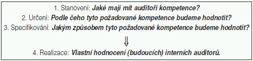 Proces stanovování kompetencí a hodnocení auditorů má zahrnovat následující 4 kroky: