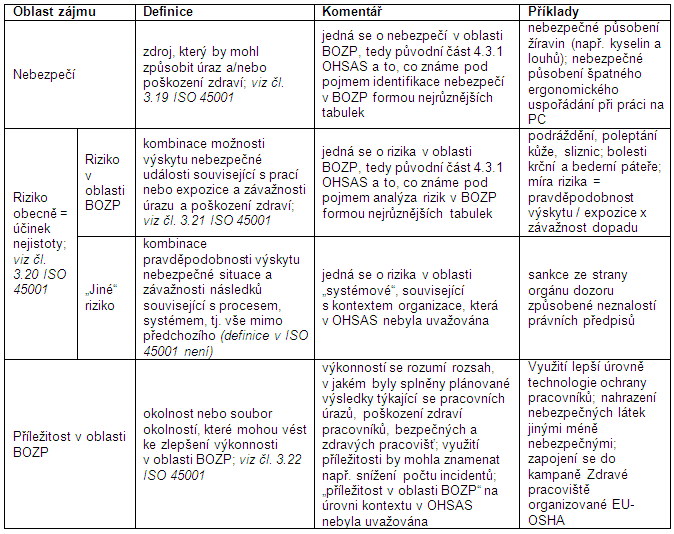 POZOR – nyní máme: "RIZIKA V OBLASTI BOZP" a "JINÁ RIZIKA".