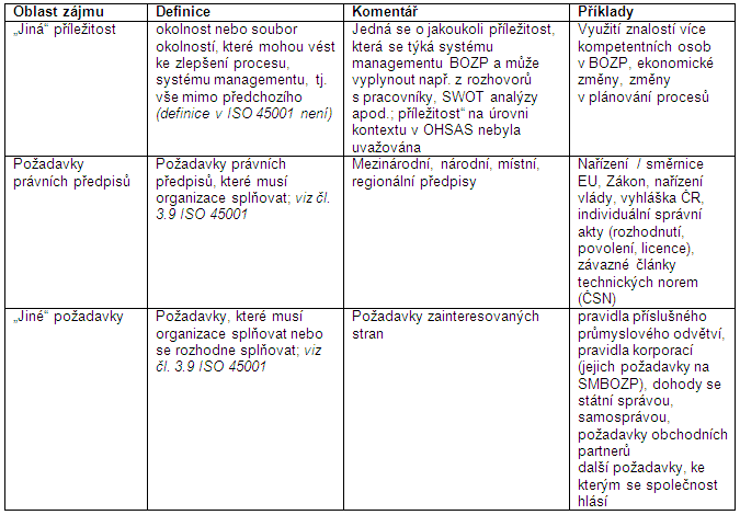 Příležitosti v oblasti BOZP a jiné příležitosti (viz dále čl. 6.1.2.3 normy);