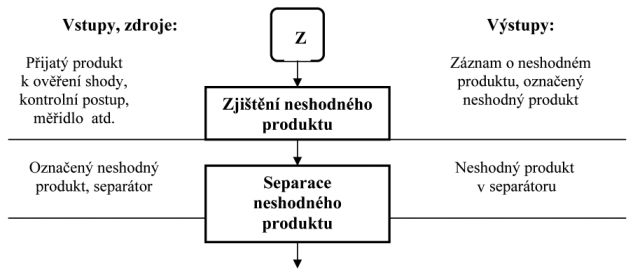 Část vývojového diagramu typu vstup – výstup procesu řízení neshodného produktu